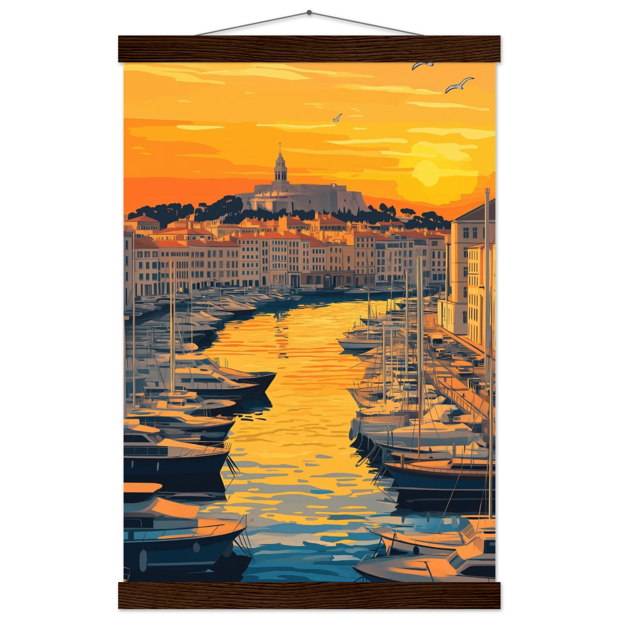 Chaque détail de cette œuvre est soigneusement pensé pour créer une atmosphère apaisante dans votre intérieur. La qualité premium de la peinture numérique assure des couleurs éclatantes qui ne se faneront pas avec le temps. Fabriquée en France, cette illustration se distingue par son esthétique douce et harmonieuse. Chaque nuance de ce ciel flamboyant et des reflets dorés sur l’eau est conçue pour captiver tous les regards.