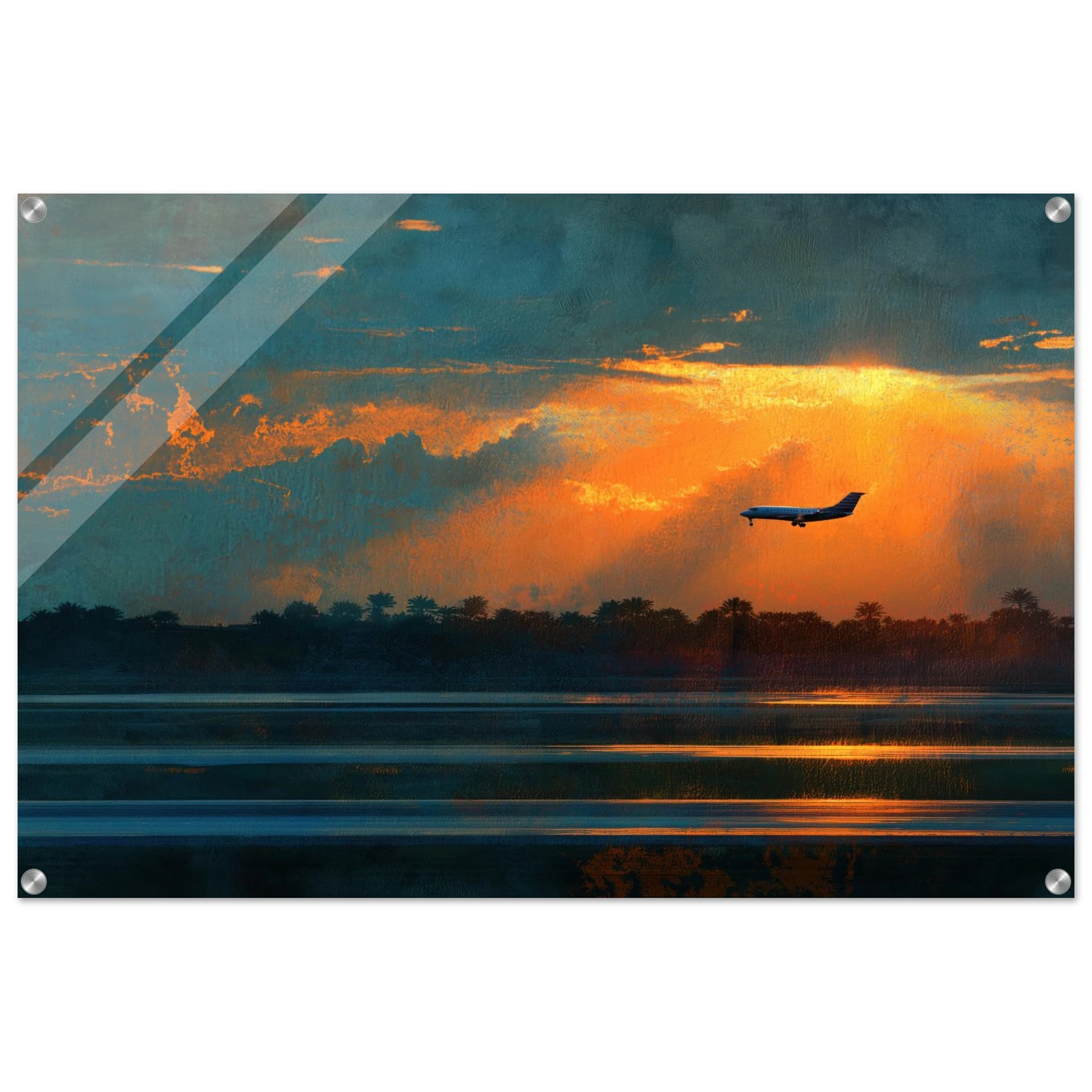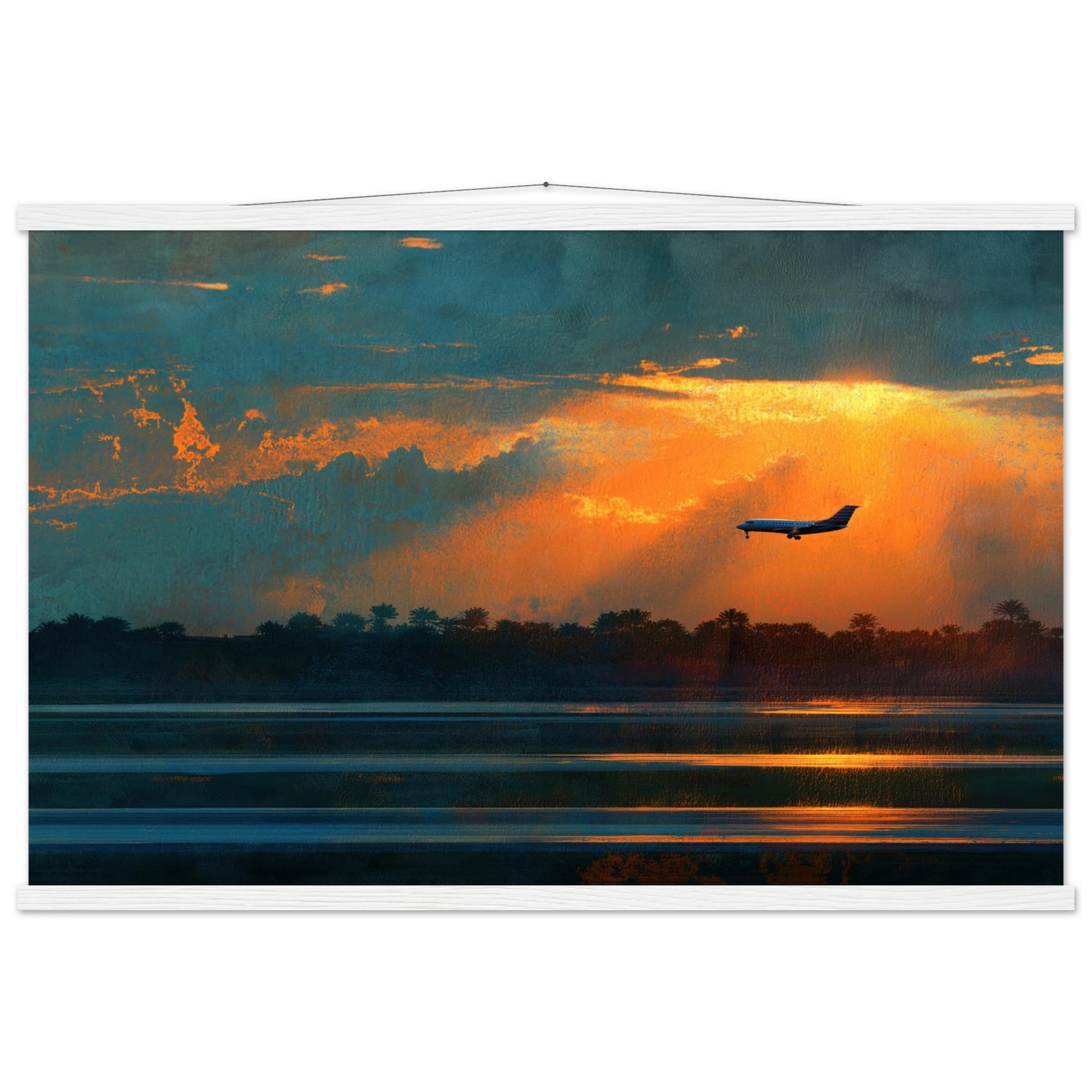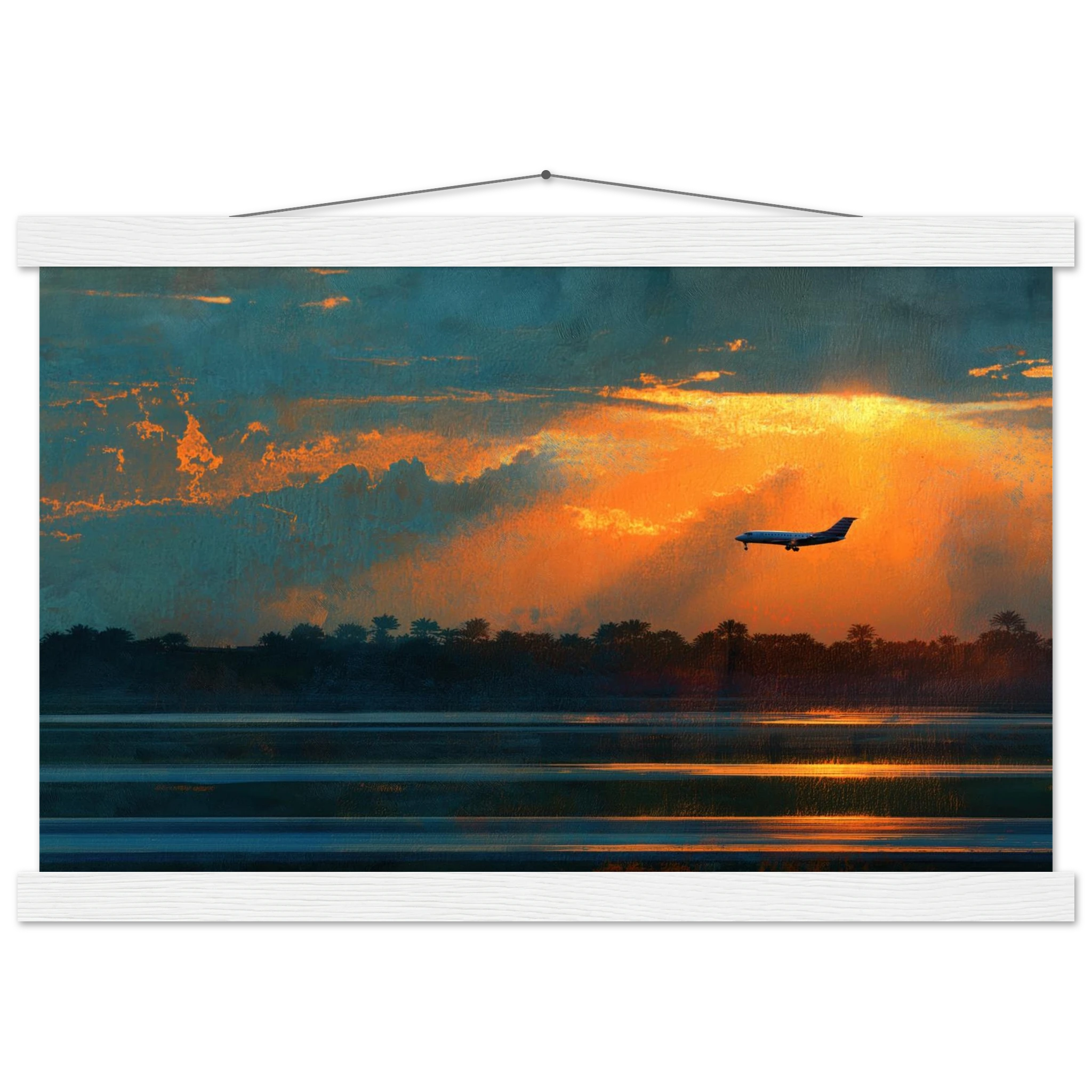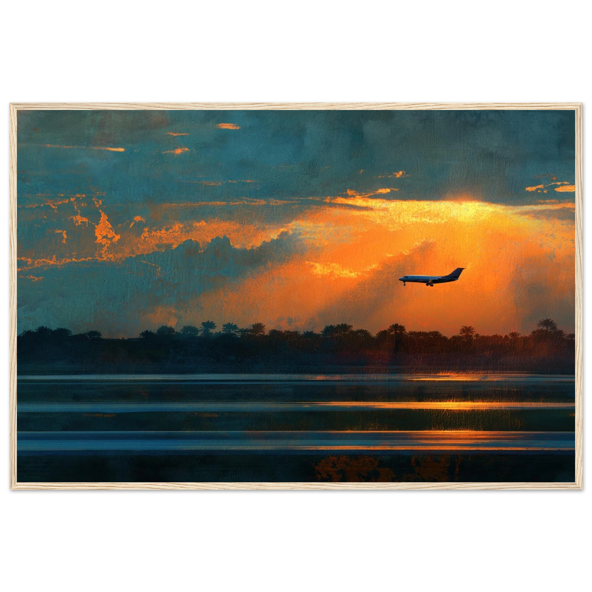 Imaginez-vous survolant Miami, un avion silhouette pendant que le ciel se teinte d'une palette orange et turquoise. Les nuages, dorés par le crépuscule, dansent avec les palmiers en ombre. Cette scène captivante vous transporte dans une ambiance vibrante où chaque regard évoque la liberté et l'évasion. Êtes-vous prêt à ajouter cette atmosphère envoûtante à votre intérieur ?