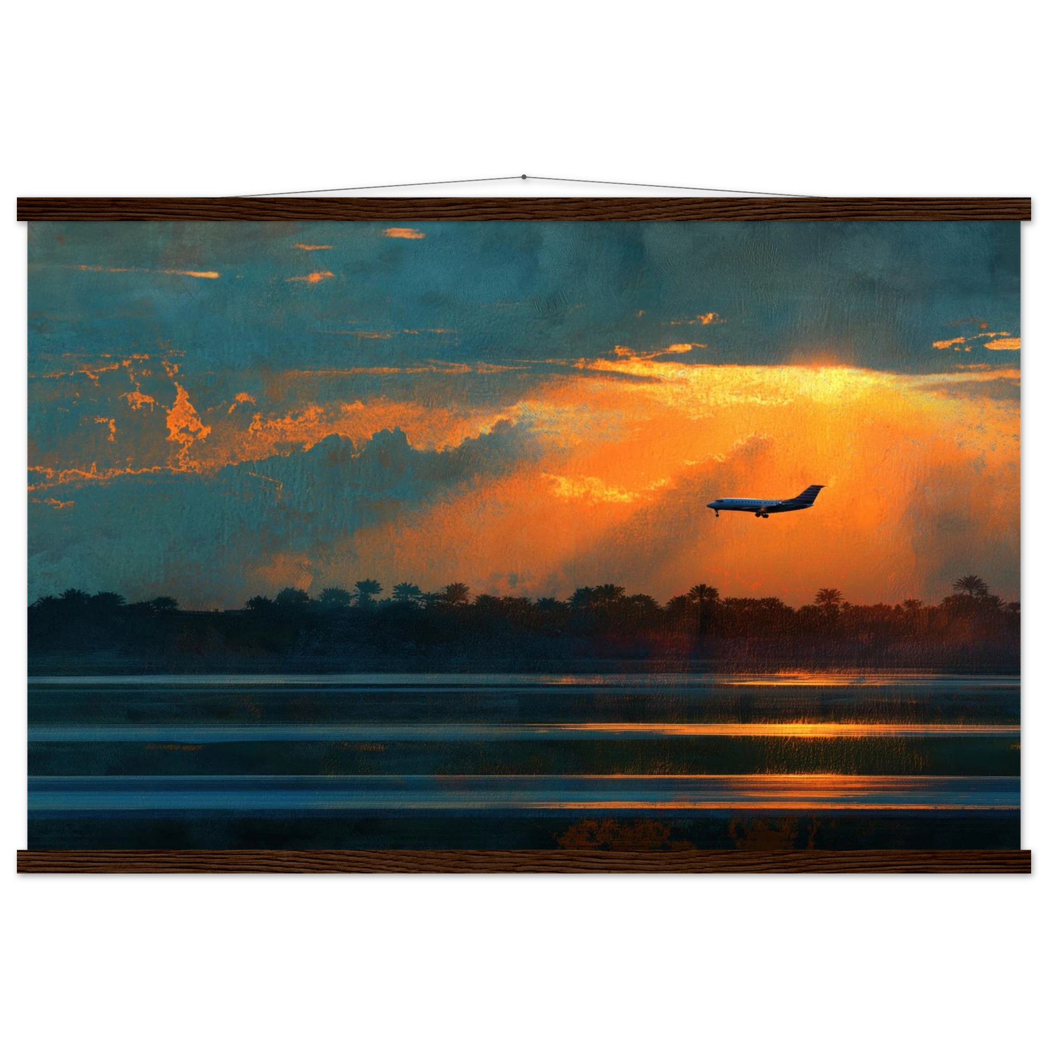 Cette illustration numérique cinématographique célèbre le vol et l'aventure, créant une atmosphère à la fois chaleureuse et dynamique. Fabriquée en France, elle combine un style unique et des couleurs intenses qui illuminent n’importe quel mur. Facile à intégrer dans votre décor, elle se démarquera dans votre salon ou votre bureau, ajoutant une touche d’audace à votre espace.