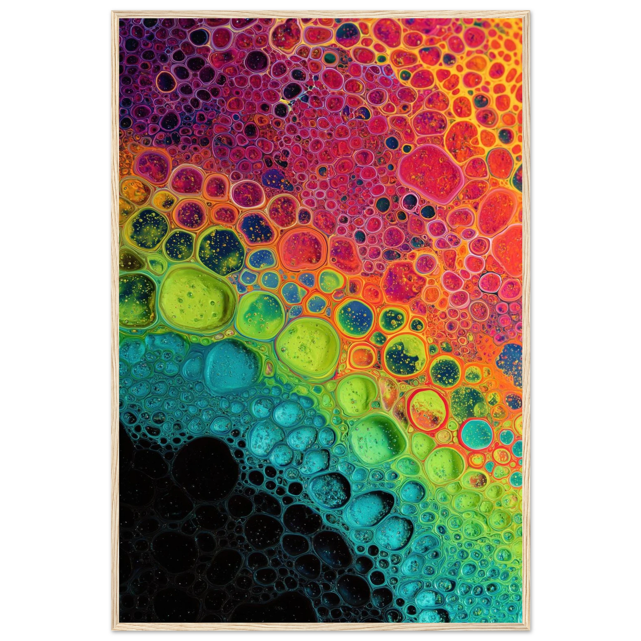 « Effervescence Polychrome sur Substrat Indéterminé » vous transporte dans un monde où les bulles multicolores flottent à la surface d'un mystère liquide. Chaque regard porté sur cette œuvre est une invitation à l'évasion, une scène vibrante qui éveille joie et curiosité. Comment ce paysage abstrait pourrait-il embelir votre espace ?