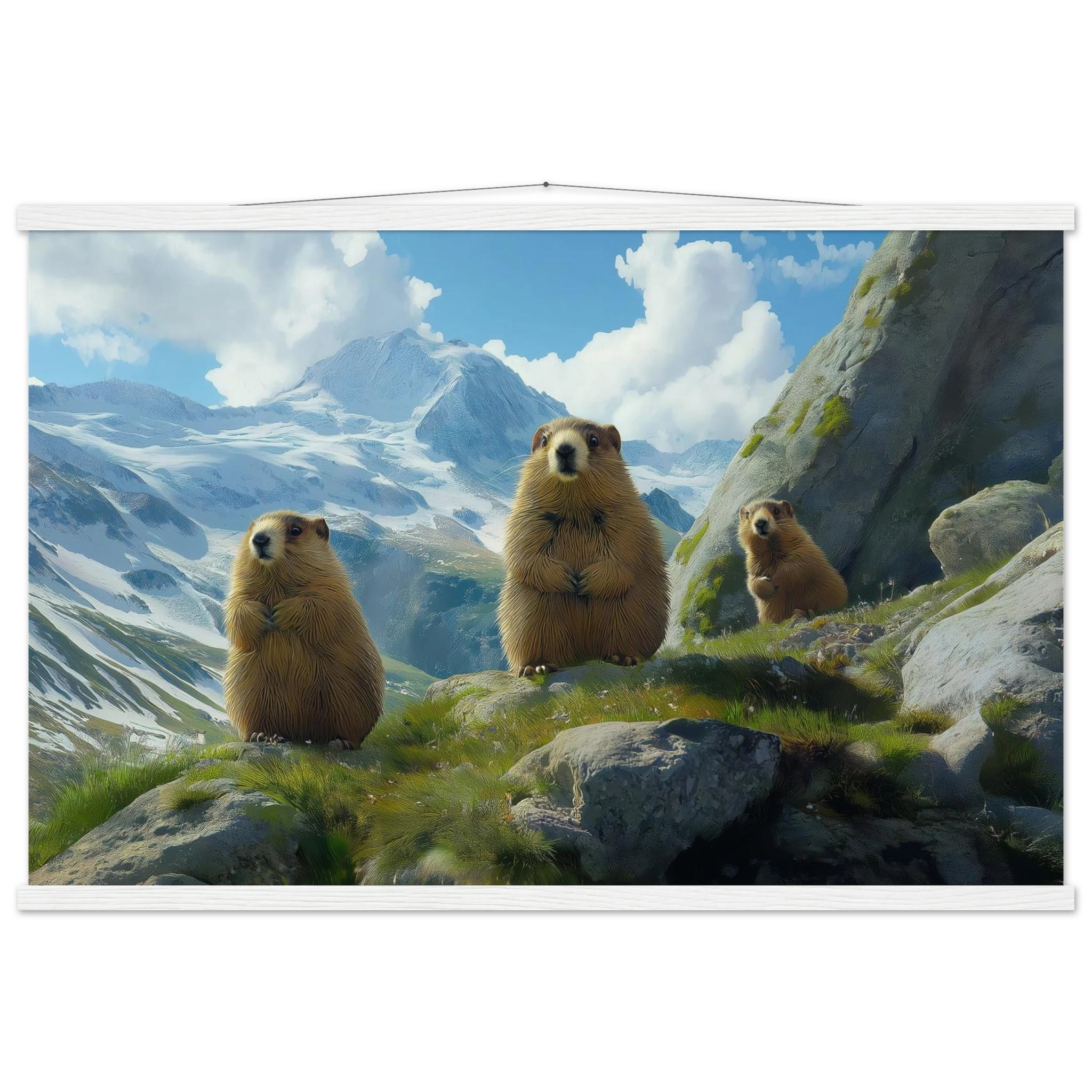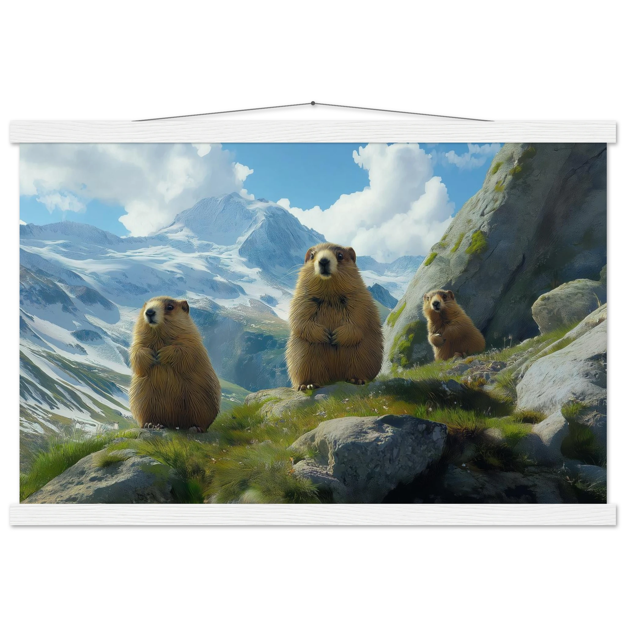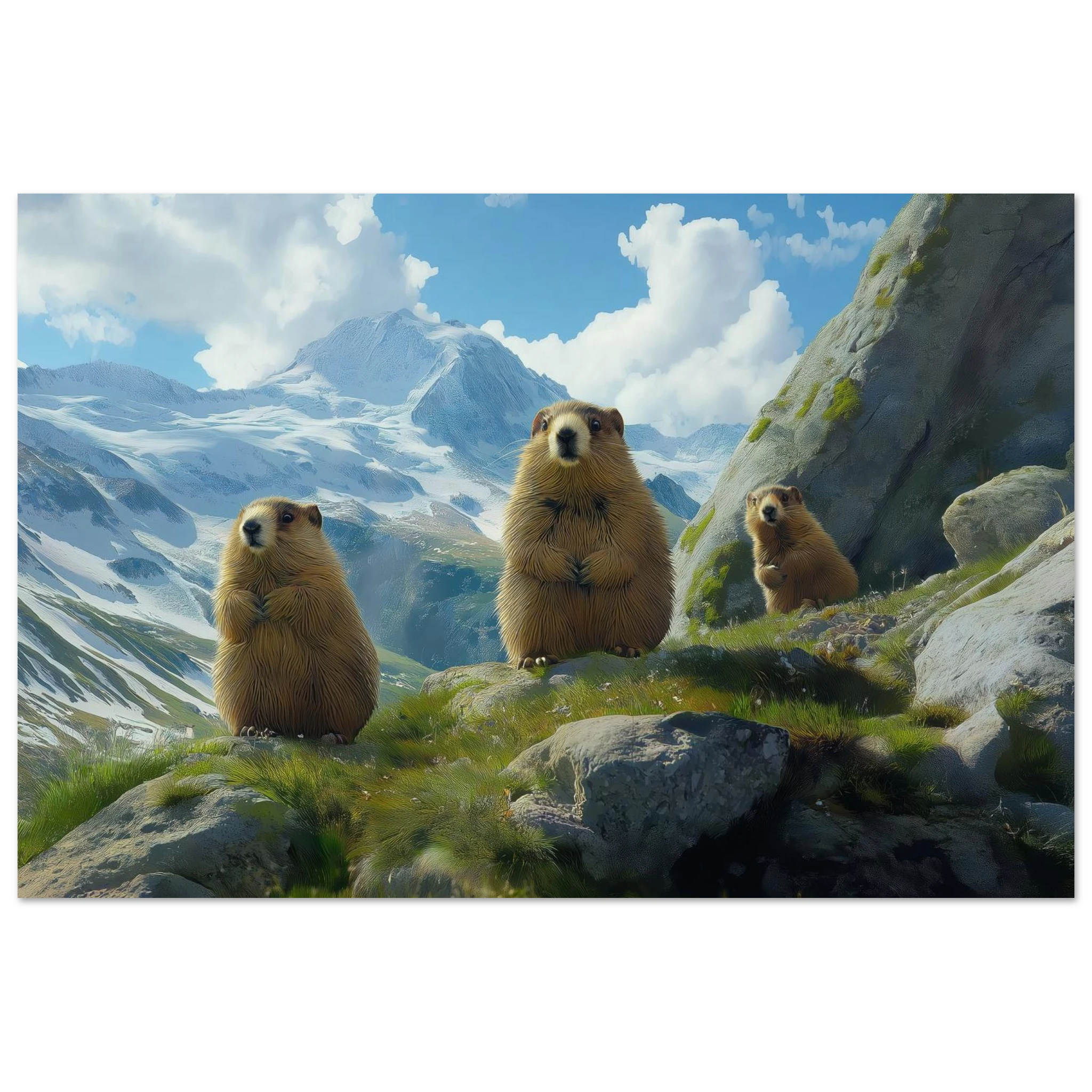 Imaginez trois marmottes, gardiennes de la nature, observant le paysage majestueux des Alpes. Ce tableau vivant évoque une quiétude rare, une invitation à la contemplation. Leurs yeux pétillants et leur posture vigilante vous rappellent que la beauté des montagnes réside aussi dans ces instants simples. Quel moment de sérénité aimeriez-vous partager avec ces sentinelles ?