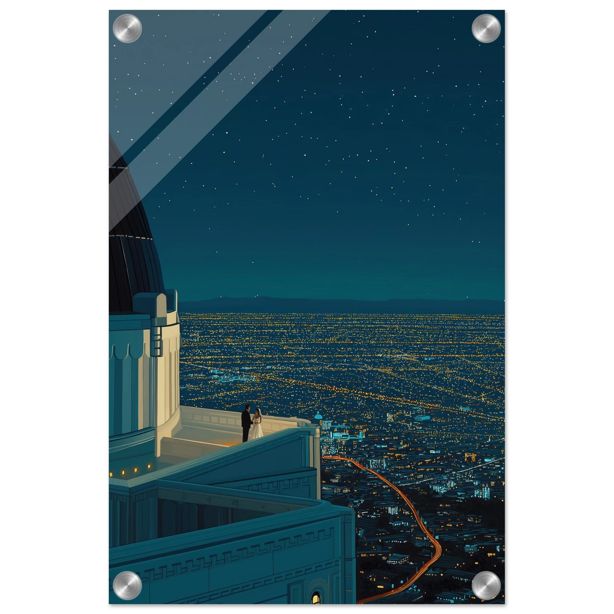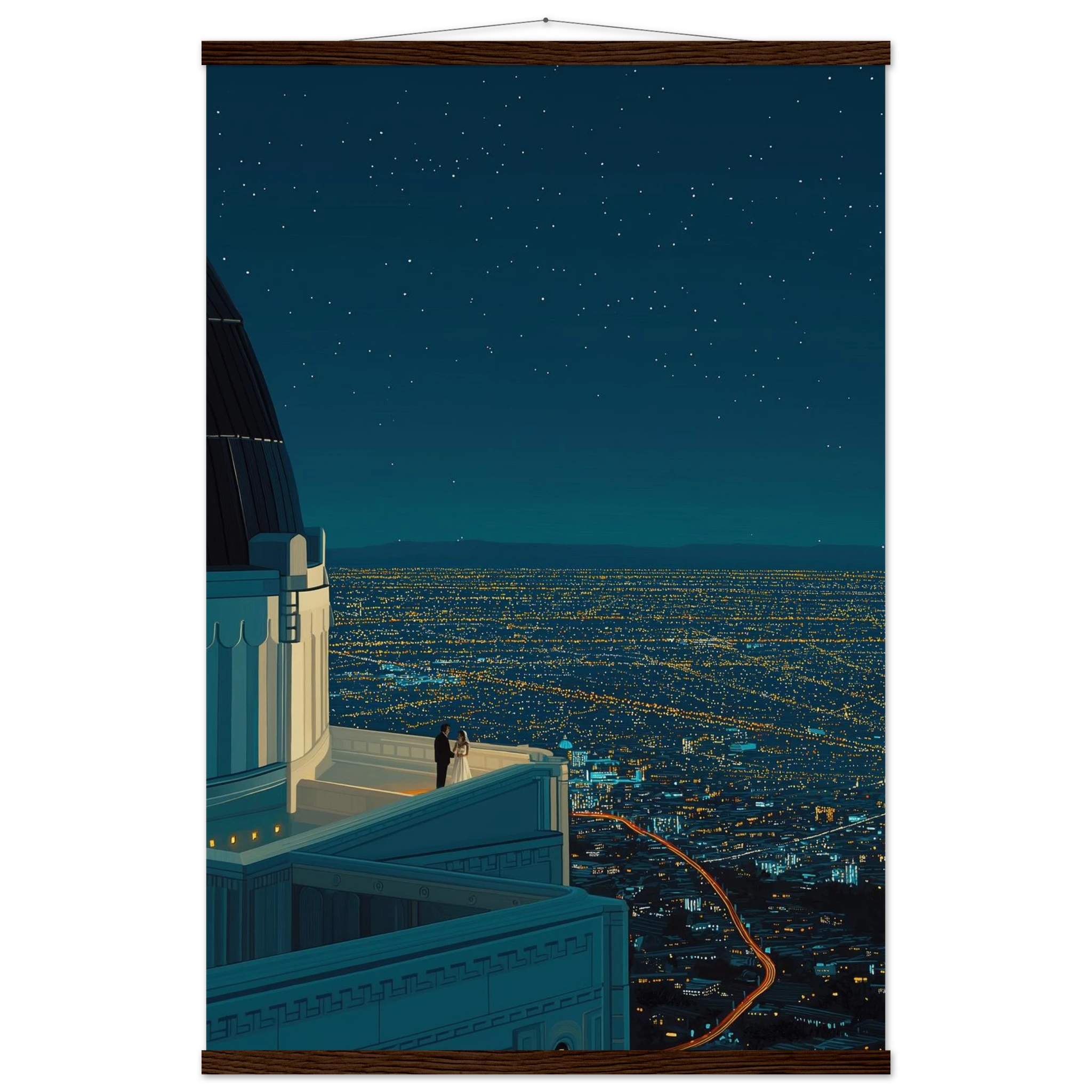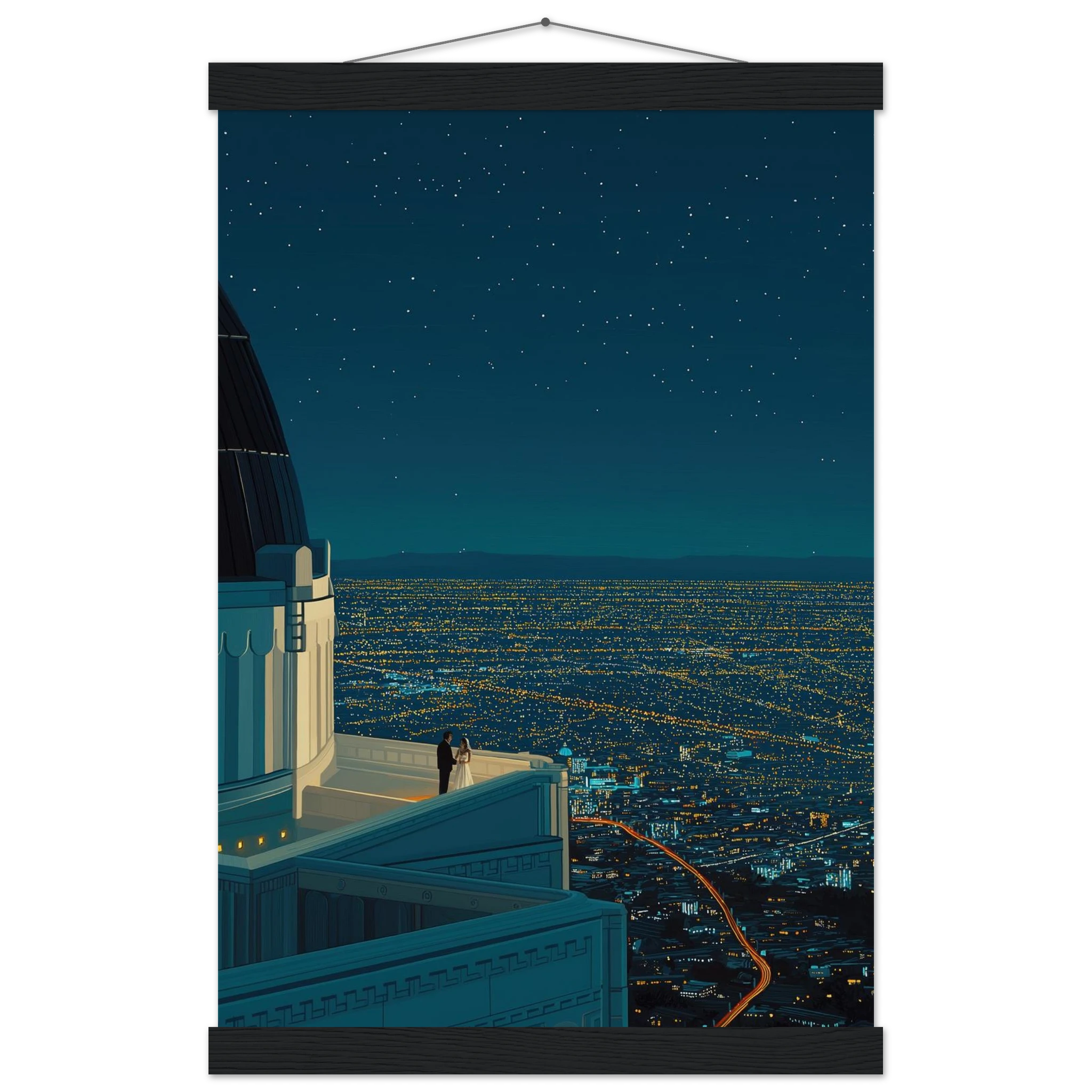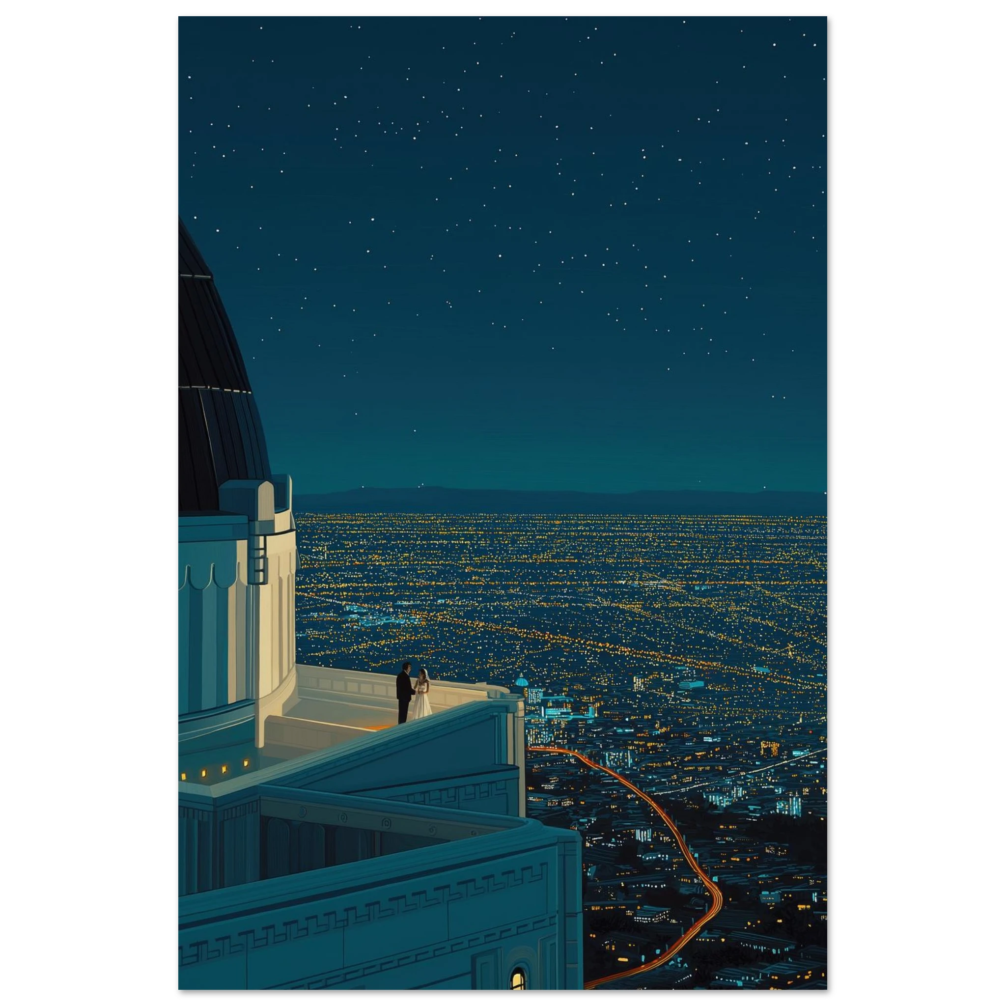 Cette illustration convient parfaitement aux passionnés de découvertes urbaines et de nature. Choisir cette œuvre, c'est embrasser la beauté des paysages nocturnes. Laissez-vous séduire par son charme tout en enrichissant votre espace de vie. Pourquoi hésiter ? Offrez-vous un morceau du ciel californien.