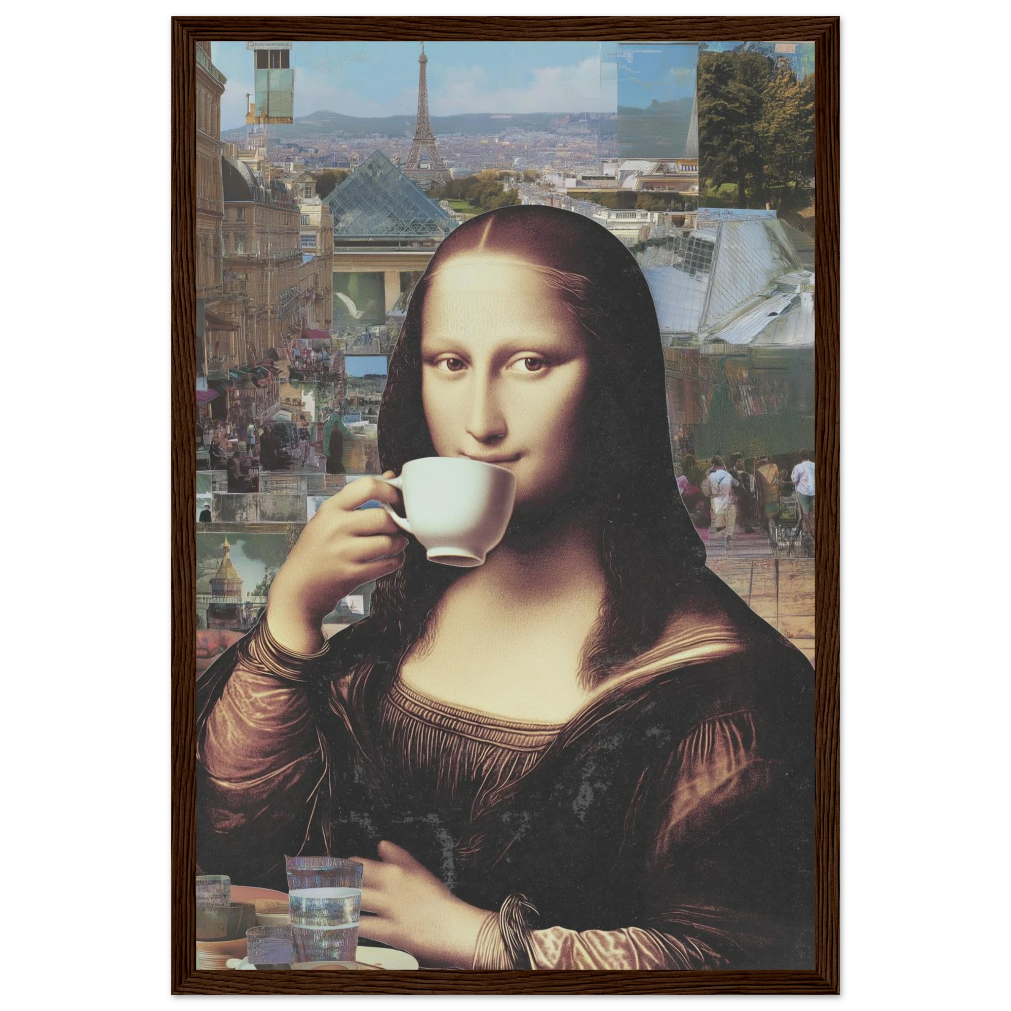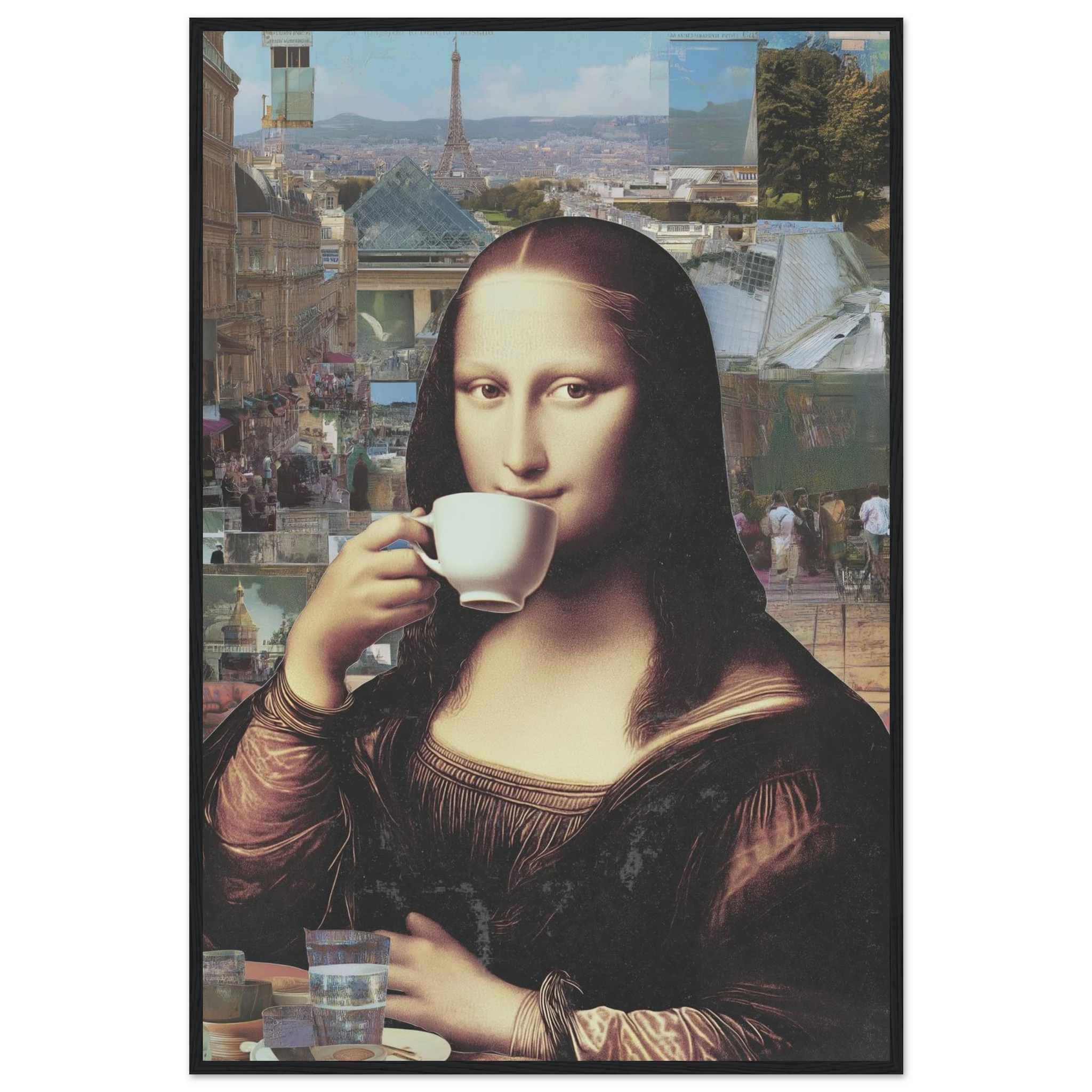Renaissance et Café Crème vous transporte au cœur de Paris. La Mona Lisa, élégamment installée en terrasse, sirote un café avec la Tour Eiffel en toile de fond. Une scène intemporelle illuminée par la lumière naturelle, où l'art de la Renaissance rencontre la vie urbaine contemporaine. Cette création unique évoque douceur et nostalgia. Êtes-vous prêt à accueillir cet hommage à l'art et à la culture ?